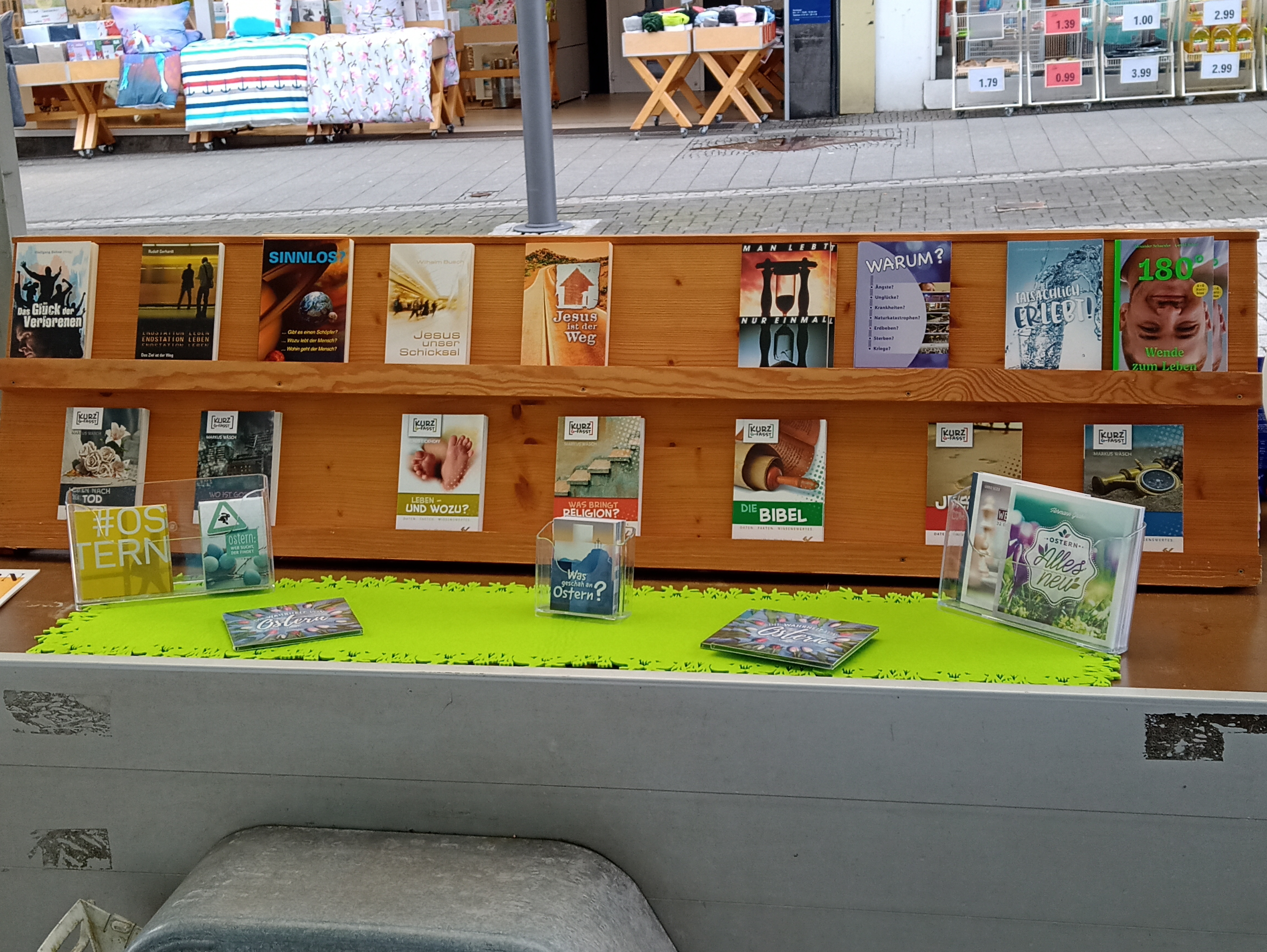 Infostand auf der Alleestraße (Kalender-Aktion)Sie haben Fragen zum Glauben an Jesus Christus oder zu den verlinkten Themen? Schreiben Sie uns eine E-Mail an unten stehende Adresse.